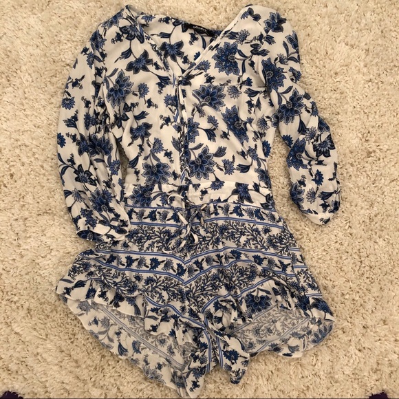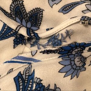 White and blue pattern. Drawstring at waist. Front clasp closure. Never worn.