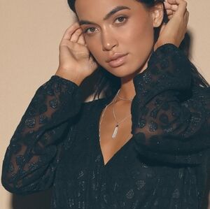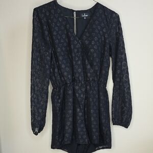 Lulu's Romper Textured V-Neck Long Sleeve shorts Black Medium