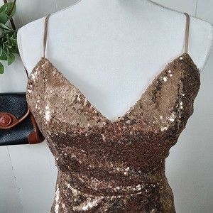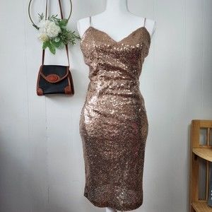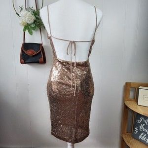 Lulus Rose Gold Sequin Bodycon Backless Mini Dress Medium