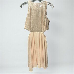 Lulus Rose Gold Sequin Halter Cutout Skater Mini Dress Medium Party