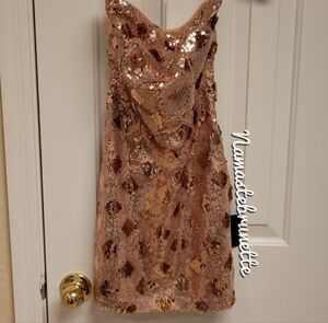 Lulu's Rose Gold Sequin Strapless Bodycon Mini Dress