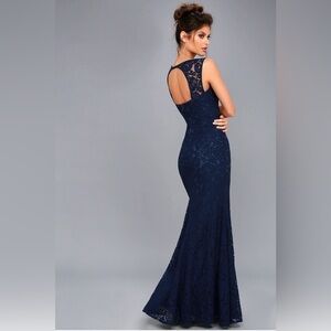 Lulus Rosetta Gown Lace Mermaid Sleeveless Sweetheart Neck Blue Maxi Dress Small