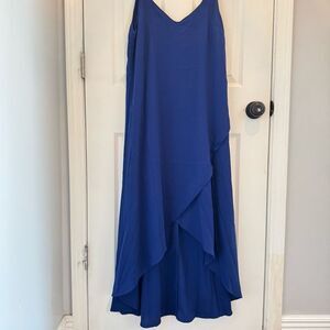 Elegant high low dress in royal blue. Features a flowing silhouette. Perfect for any occasion. NWT, just too large for me. So sad, this floppy dress is so pretty and can be dressed up or down, can add jacket for colder weather, such a versatile staple for your closet
