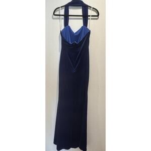 Lulu’s Royal Blue Velvet Gown Women’s Size Medium Halter Dress Enchnating Touch