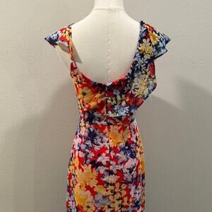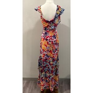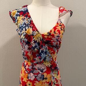 Lulus Floral Print Ruby Red Chiffon Maxi Dress XS Wedding Feminine Date Night