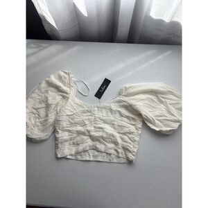 Lulus Ruched Crop Top Puff Sleeve Blouse Square Neck White Size S