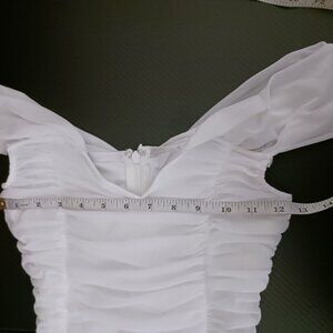 Keywords: white mermaid dress, ruched maxi dress, formal evening gown, off shoulder dress, bridal dress, Lulus white dress, mesh mermaid gown, women’s formal wear, elegant white gown, party maxi dress, maxi dress with ruched details, off-the-shoulder white gown, chic white formal dress, medium wedding dress