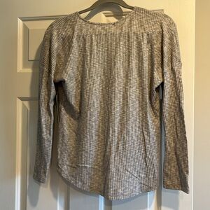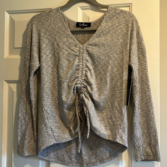 Lightweight ribbed sweater with adjustable ruched front. New with tags, nonsmoker.