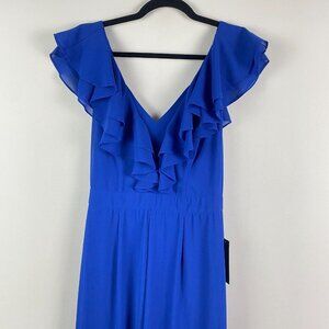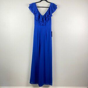 Lulus Ruffle Front Wide Leg Jumpsuit Size Small Blue Cap Sleeve