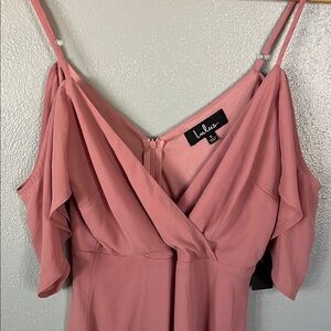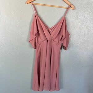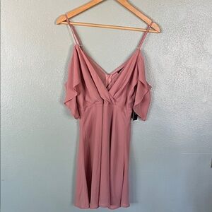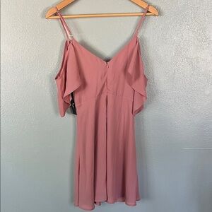 Chic mini romper with ruffle sleeves. Soft blush pink fabric. Perfect for any event. NWT