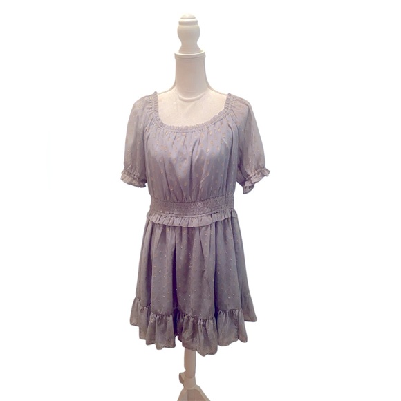 Preloved dress. Good condition. Snags throughout dress. Mini, short sleeve, ruffle. Approximate measurements- Length-36”, Armpit to Armpit-18”, waist-16”, sleeves-13 1/2”. No trades. Smoke free and Pet free environment. Thank you!