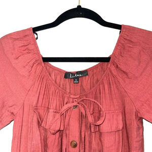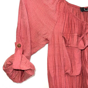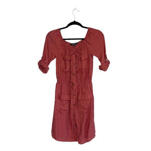 Lulus Rust Orange Button Front Off the Shoulder Utility Mini Dress Small Women’s