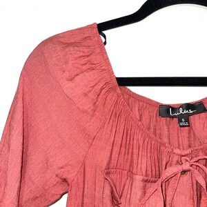 Lulu’s rust orange off the shoulder utility mini dress. In excellent condition! Wide neckline. Can be worn on or off the shoulders. Adjustable tie on the neck. Cropped, tabbed sleeves. Four flap closure pockets on the front. Button front details. Fitted waistline. Mini silhouette. Fully lined. Rust orange color. Size small.