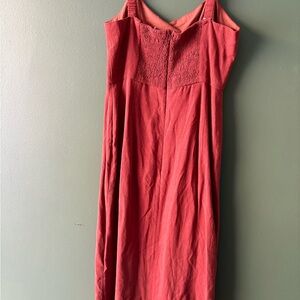Cotton / linen mix. This dress is a rust red color perfect for fall. Only worn twice.