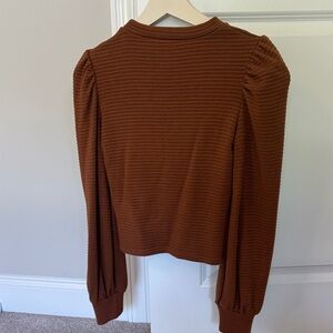 Lulu's Rust Ribbed Long Sleeve Blouse