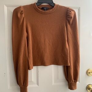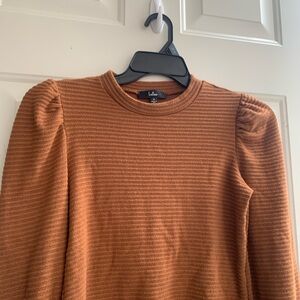 Lulu's Rust Ribbed Puff Sleeve Blouse