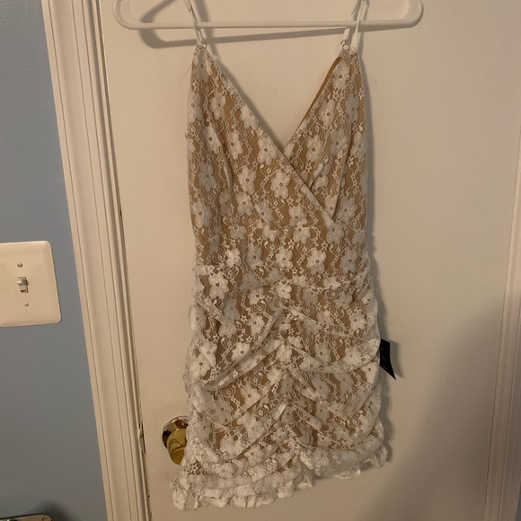 Lulus Rutched Cream Dress