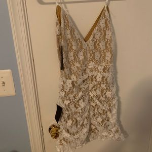 this dress has never been worn and is in perfect condition. i love the dress, but i bought it for homecoming and decided to go with a different dress. it fits amazing, but it’s kind of short. if you are taller than like 5’5 it might be way too short. i will iron it before i ship it out. i am taking offers!!
