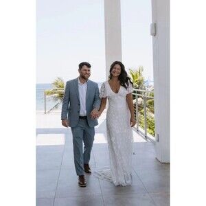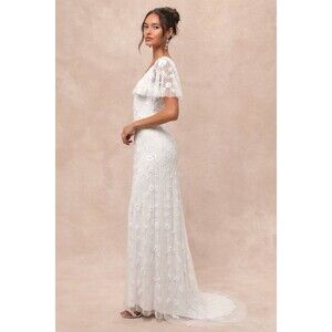 Lulus Safiya White Sequin Flutter Sleeve Maxi Wedding Dress Size Small NWT Beach