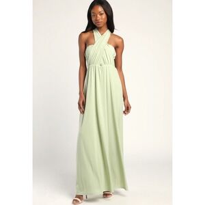 Lulus Sage Green Convertible Strapless Maxi Dress Formal Wedding Guest Gown Sz S