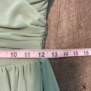 Keywords: Lulus dress, strapless maxi dress, sage green dress, formal gown, wedding guest dress, party dress, empire waist dress, long dress, size S dress, evening gown, special occasion dress, nylon dress, green gown, bridesmaid dress
