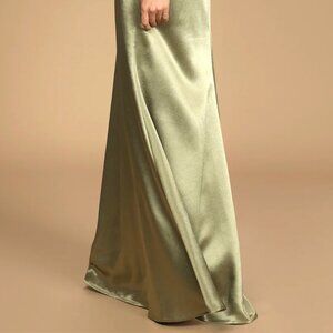 Lulus Sage Green Satin One-Shoulder Maxi Dress XS