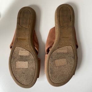 Plush vegan suede straps cross over an almond toe bed. Easy to wear slide-on design. In great condition. Size 7.
