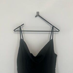 Lulus Satin Cowl Neck Front High Slit Strappy Romantic Maxi Dress In Black