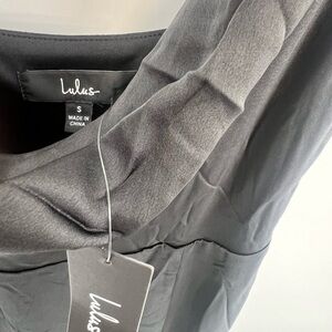 Lulus Satin Cowl Neck Front High Slit Strappy Romantic Maxi Dress In Black