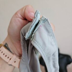 This is a light green bodysuit by Lulu's. It has lace detailing on the neckline and adjustable straps. This bodysuit has snaps at the crotch - note the pink marks as shown in the photos.