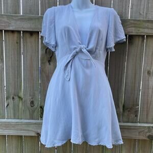 Lulus Sea Day Light Blue Skater Dress. Great condition. Size S. Self 65% rayon 35% nylon. Lining 100% polyester. Tie front detail. Side zip detail.