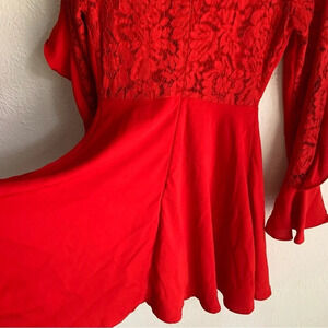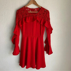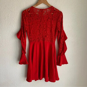 Lulu’s Secret Kiss Red Lace Long Sleeve Dress Sz Small