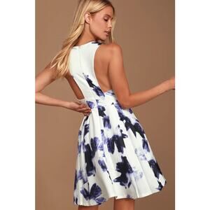 We couldn't have imagined a piece as perfect as the Lulus Seeing Chic Blue and Ivory Print Skater Dress! Ivory woven fabric (with a blue abstract print) forms a sleeveless bodice with princess seams and a V-neckline. Tulip skirt is finished with lovely pleats. Modified racerback. Hidden back zipper with clasp.