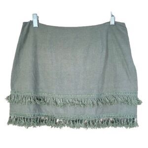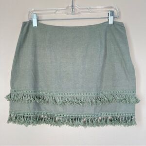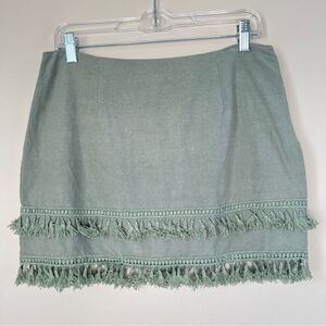 Lulus Sekera Sage Green Tassel Zip Back Ramie Blend Mini Skirt Size Large