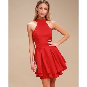 When the spotlight falls on you, you'll be grateful to be donning a number as cute as this! Medium-weight woven fabric falls from halter neckline into a princess-seamed bodice with wide arm openings. Neckline fastens at back above a cutout before meeting banded waist & full skater skirt