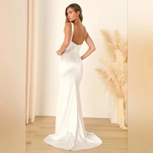 Lulu's Sensational Promise White Satin Square Neck Mermaid Maxi Dress XL Wedding. New without tags. See all pictures for details.