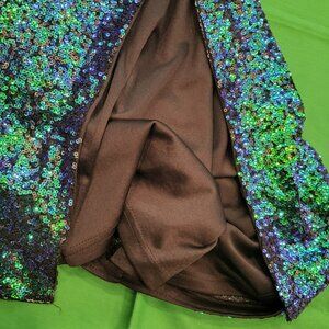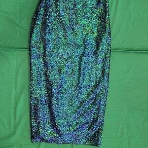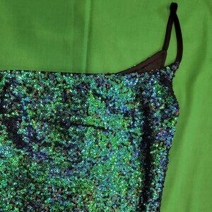 Lulus Sequin Dress Green & Blue Size XS One Shoulder Slit Prom HOCO NWT