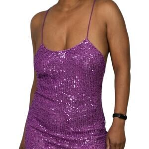Lulus Sequin Dress Purple Magenta Midi Stretch Knit Shiny Thigh Slit Cocktail XS
