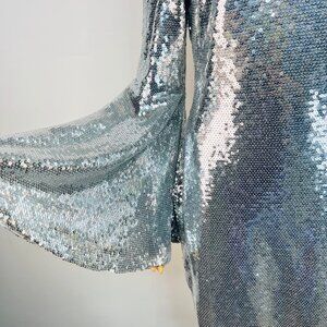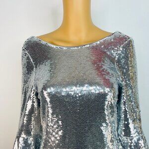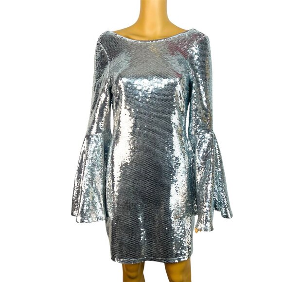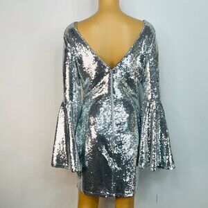 Lulus Sequin Silver Long Bell Sleeves Mini Dress Size M Sheath dress Party New