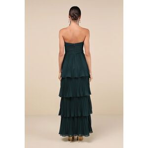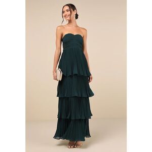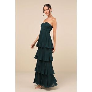 Sweeping everyone off their feet is so easy when you have a romantic look like the Lulus Seriously Sensational Emerald Strapless Tiered Maxi Dress! Lightweight pleated woven chiffon shapes this flirty dress that features a strapless bodice (with hidden no-slip strips) and a sweetheart neckline. The high, fitted waist tops a figure-skimming, tiered skirt that cascades down to a maxi hem. Hidden back zipper/clasp.