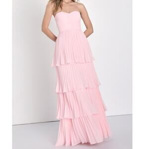 Lulus Seriously Sensational Light Pink Strapless Sweetheart Tiered Maxi Dress XS