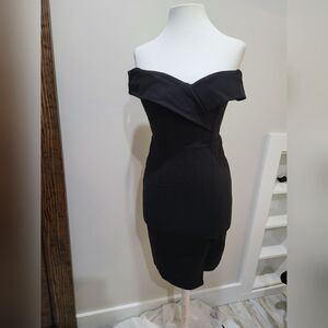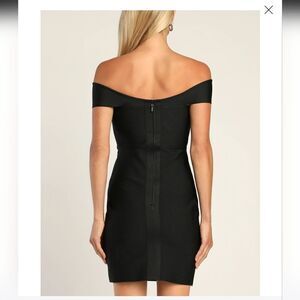Lulus Seriously Sexy Black Off-the-Shoulder Bodycon Bandage Mini Dress Small
