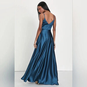 Lulus Shades of Love Teal Blue Satin Faux-Wrap Maxi Dress Wedding Party. New without tags. See all pictures for details.