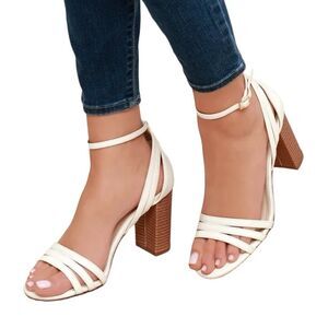 Lulus Shayla White Ankle Strap Heels Womens Size 8.5