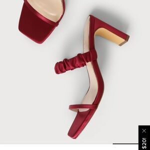 Lulus Sheenuh Wine Red Satin Square Toe High Heel Sandals - Size 8