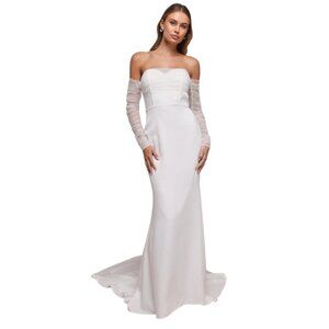Lulus Sheer Sleeve Off the Shoulder Wedding Dress NWT Size XS