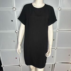 Lulu's Shift and Shout Black Shift Dress Size Large Short Sleeve Gold Zipper, Mini Short Dress