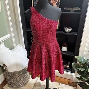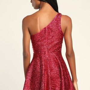 This Lulus Shimmer Barbie City Fuchsia One Shoulder Mini Skater Dress Size M is Brand New With Tags!