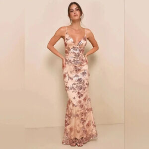 Lulu's Shine Language Rose Gold Sequin Mermaid Maxi Dress Wedding Party Guest