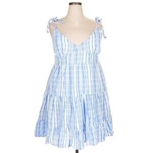 Lulus Shore of Yourself Blue Striped Tie Strap Tiered Mini Dress 2X Cotton NWT